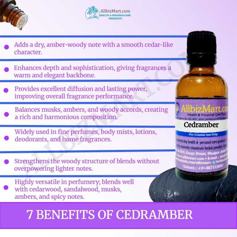 Cedramber has a rich, dry woody aroma with soft amber undertones, perfect for modern and elegant perfumes.