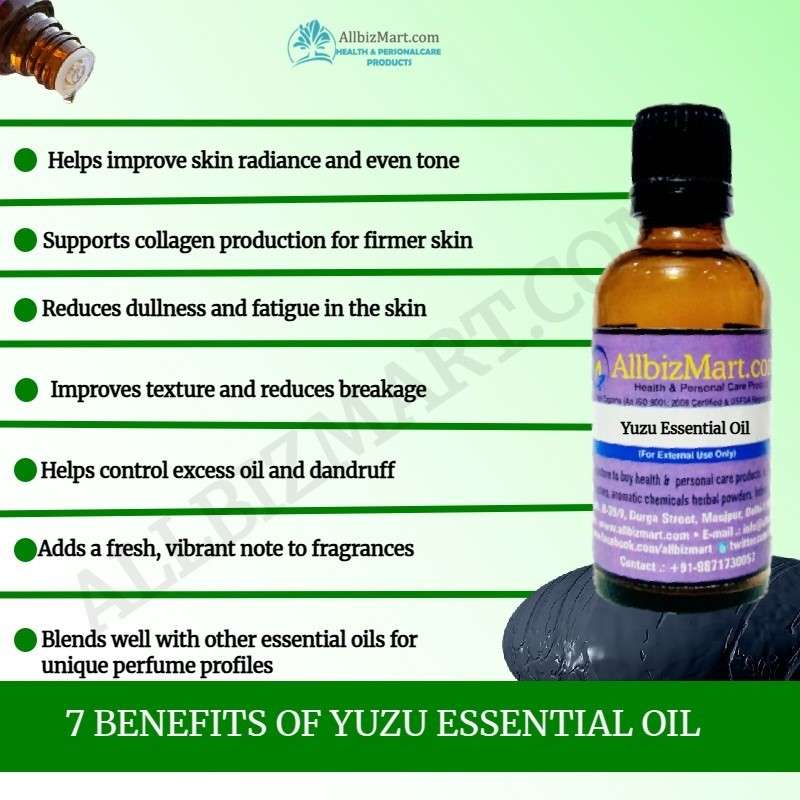 Yuzu Essential Oil’s unique combination of citrus freshness with subtle floral undertones makes it a valuable middle or top note in natural perfume and aroma formulations. It blends harmoniously with woody, herbal, and other citrus oils, adding complexity and brightness. Its presence enriches scent profiles with elegance and vibrancy.